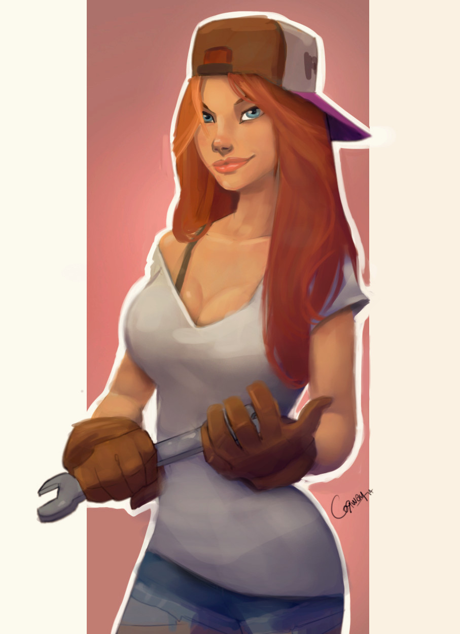 Character for Racing game at work. Shes a mechanic...a hot one. Because that how this world rolls